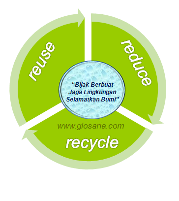 Reuse artinya penggunaan kembali, maksudnya menggunakan produk atau barang yang bisa digunakan kembali. Usaha ini tentunya harus dilakukan dengan tidak memakai atau menghindari penggunaan produk sekali pakai. Penggunaan kembali akan memperpanjang usia pakai produk sebelum produk itu menjadi limbah.3. Recyle