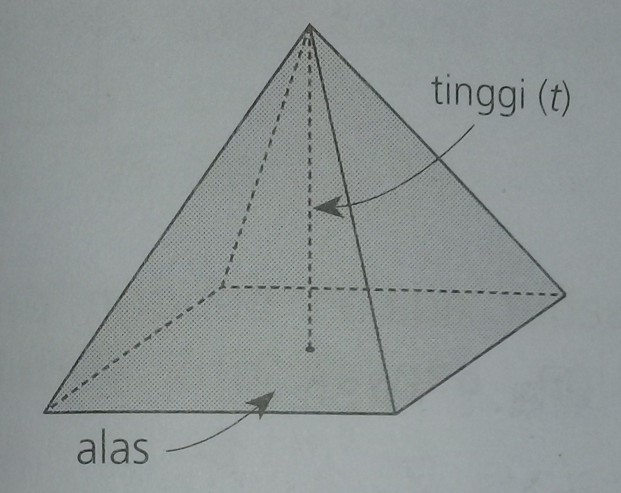Rumus untuk mencari volume limas segi empat adalah 1/3 x luas alas x tinggi. Luas alas dapat dicari dengan mengalikan rusuk x rusuk.Contoh soal