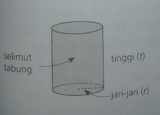 Ï€ = 22/7 atau 3,14, r= jari-jari lingkaran;t=tinggi tabung