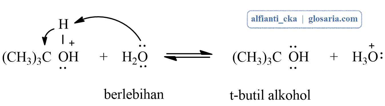 Tahap terakhir dalam deret ini adalah lepasnya H+ dari dalam alkohol berproton dalam suatu reaksi asam-basa yang cepat dan reversibel dengan pelarut.