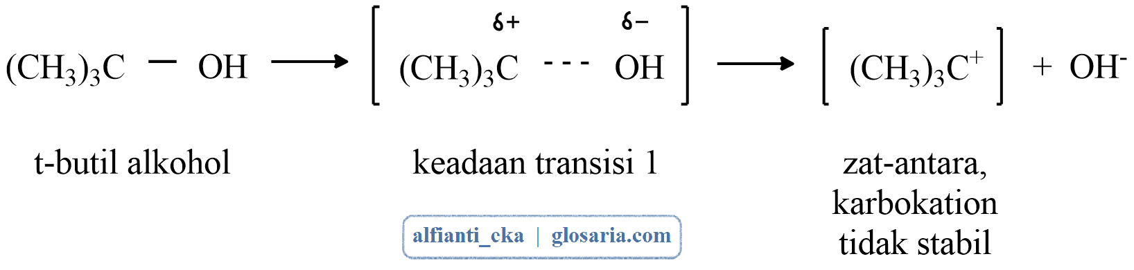 utamanya, yaitu tahap pertama adalah pelepasan leaving group yang akan