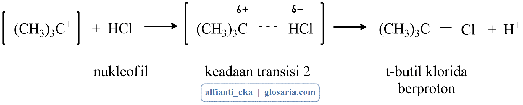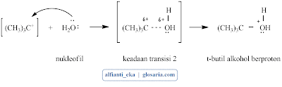 menjadi karbokation dan tahap kedua adalah penyerangan oleh nukleofil terhadap