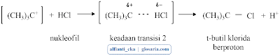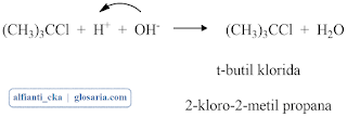 nukleofilik (SN1) dihasilkan produk berupa t-butil klorida dengan