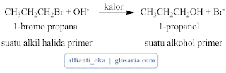 alkil halida dan ion hidroksida. Bila alkil halida primer dipanasi dengan