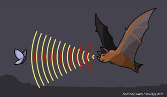 Kelelawar akan mengeluarkan banyak suara dengan frekuensi tinggi atau yang disebut dengan bunyi ultrasonik kemudian dia menerima pantulan bunyi tersebut dengan kemampuan pendengaran nya yang tajam. Oleh karena itu kelelawar dapat mengetahui benda-benda disekitarnya sehingga dia dapat menghindari dengan bermanuver dengan cepat sehingga tidak menabrak.
