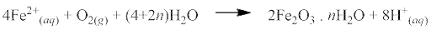 Ion Fe2+ tersebut kemudian mengalami oksidasi lebih lanjut dengan reaksi: