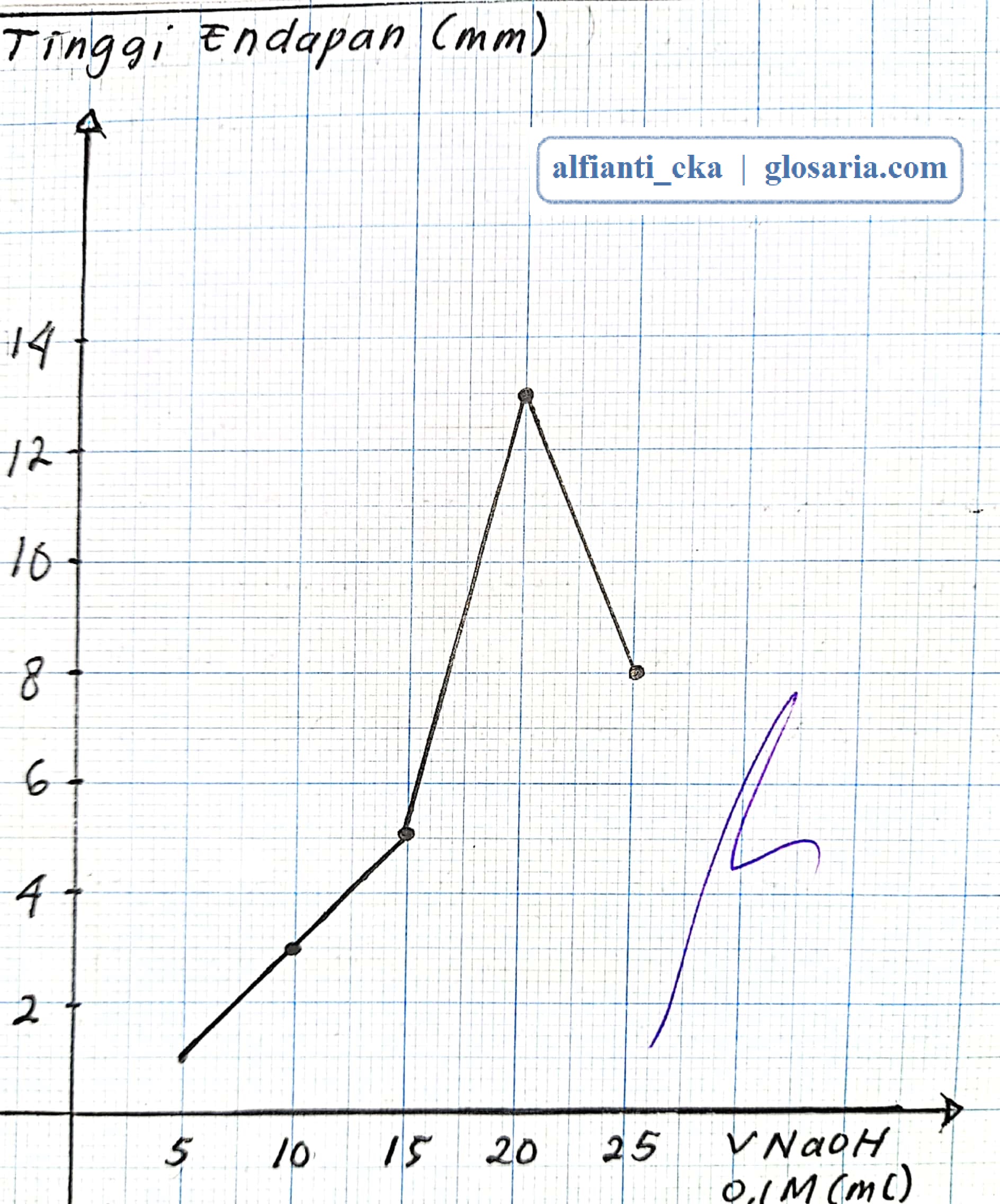 | Grafik hubungan tinggi endapan terhadap volume NaOH 0,1M |