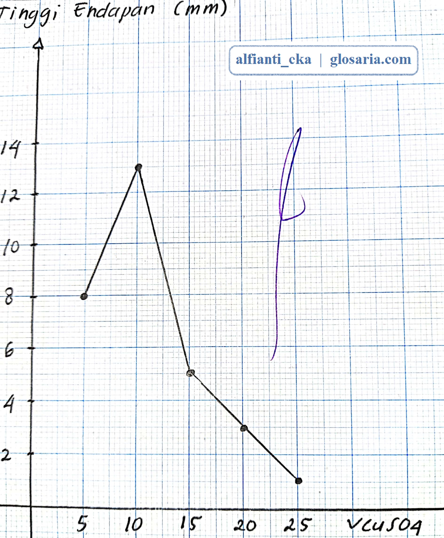 | Grafik hubungan tinggi endapan terhadap volume CuSO4 0,1M |