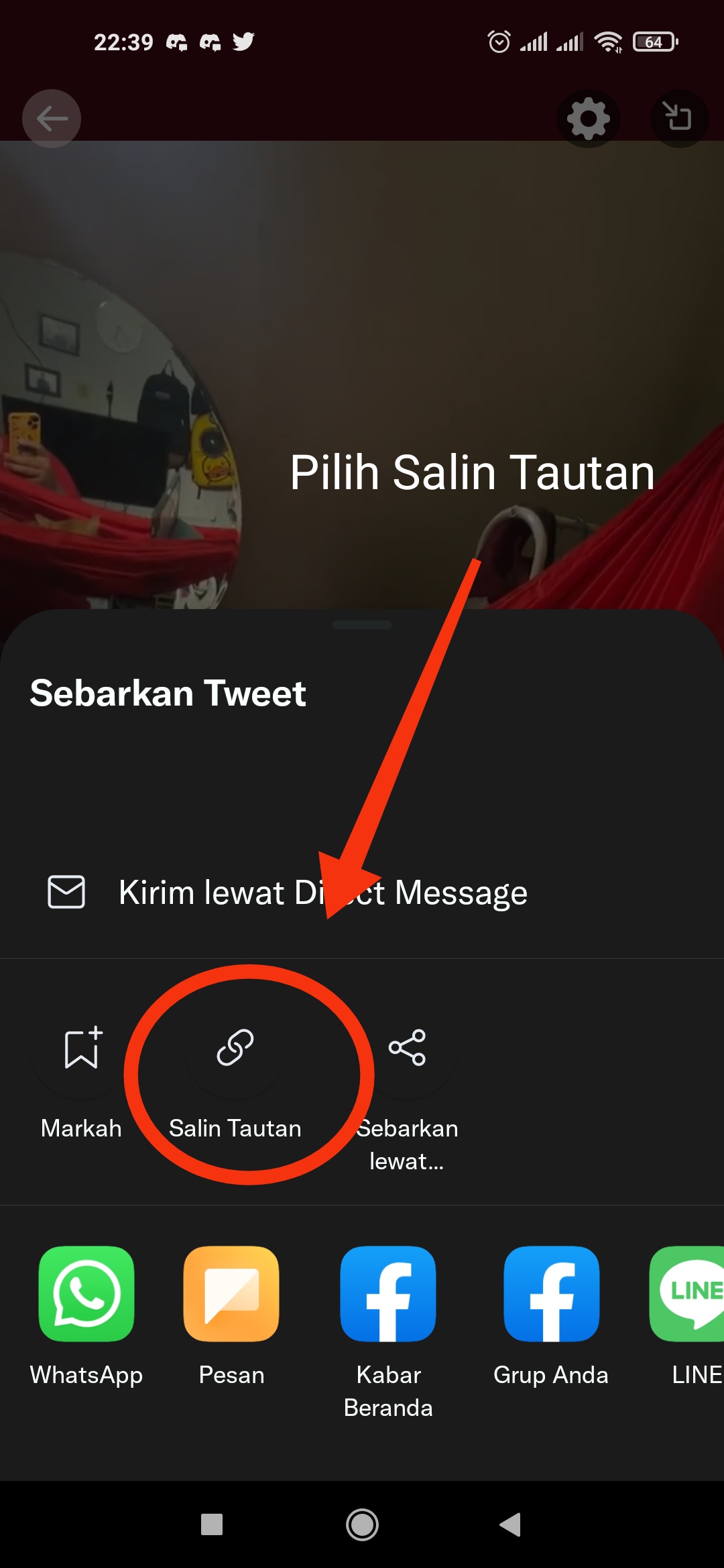 - Buka Tweet lalu copy link URL video Twitter yang akan didownload.