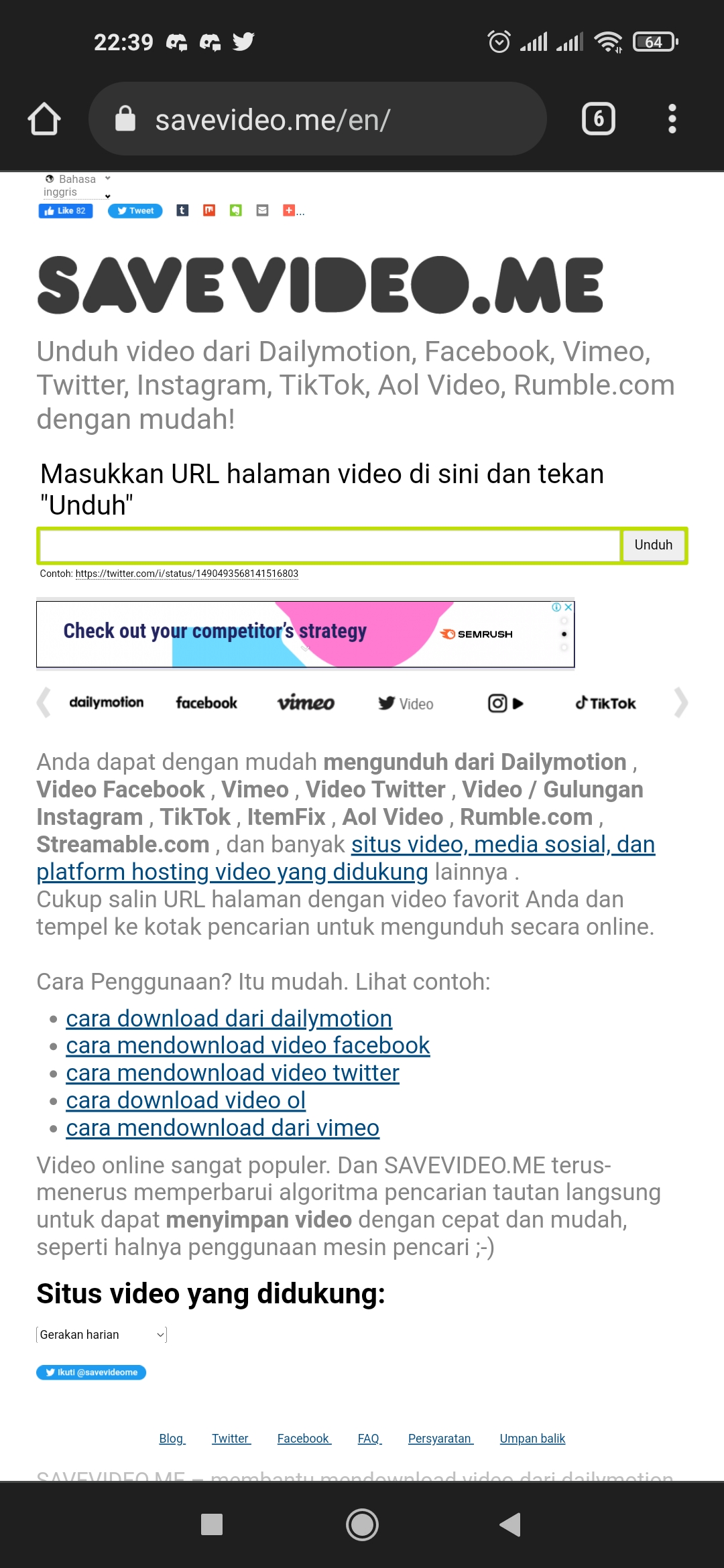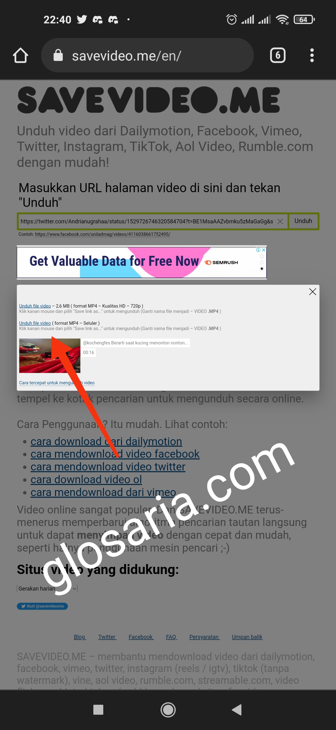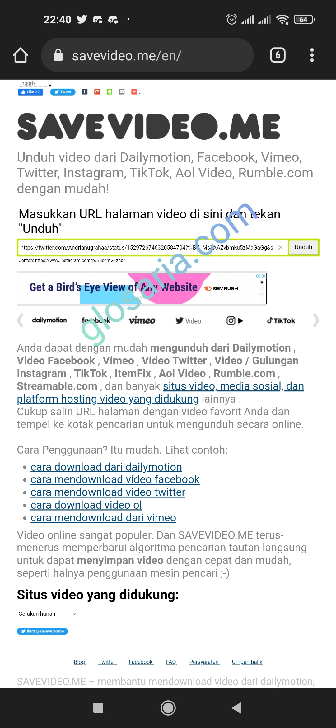 Berikut ini adalah tutorial cara download video Twitter dari HP tanpa aplikasi dengan menggunakan website savevideo.me